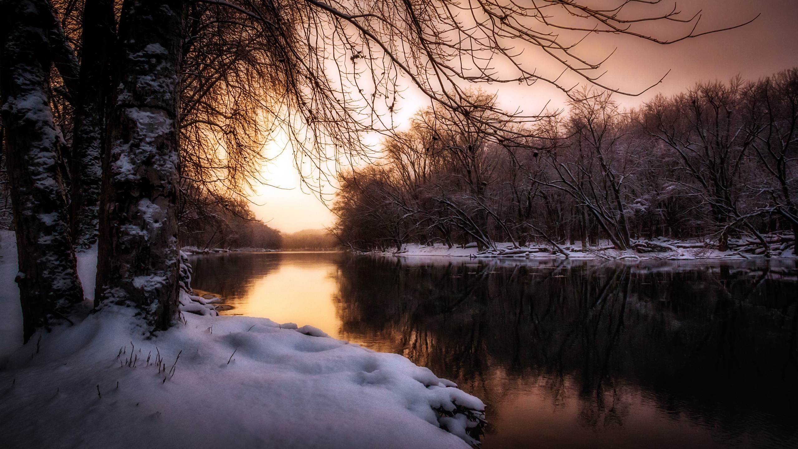 Как скачать картинку река лес снег ветки
