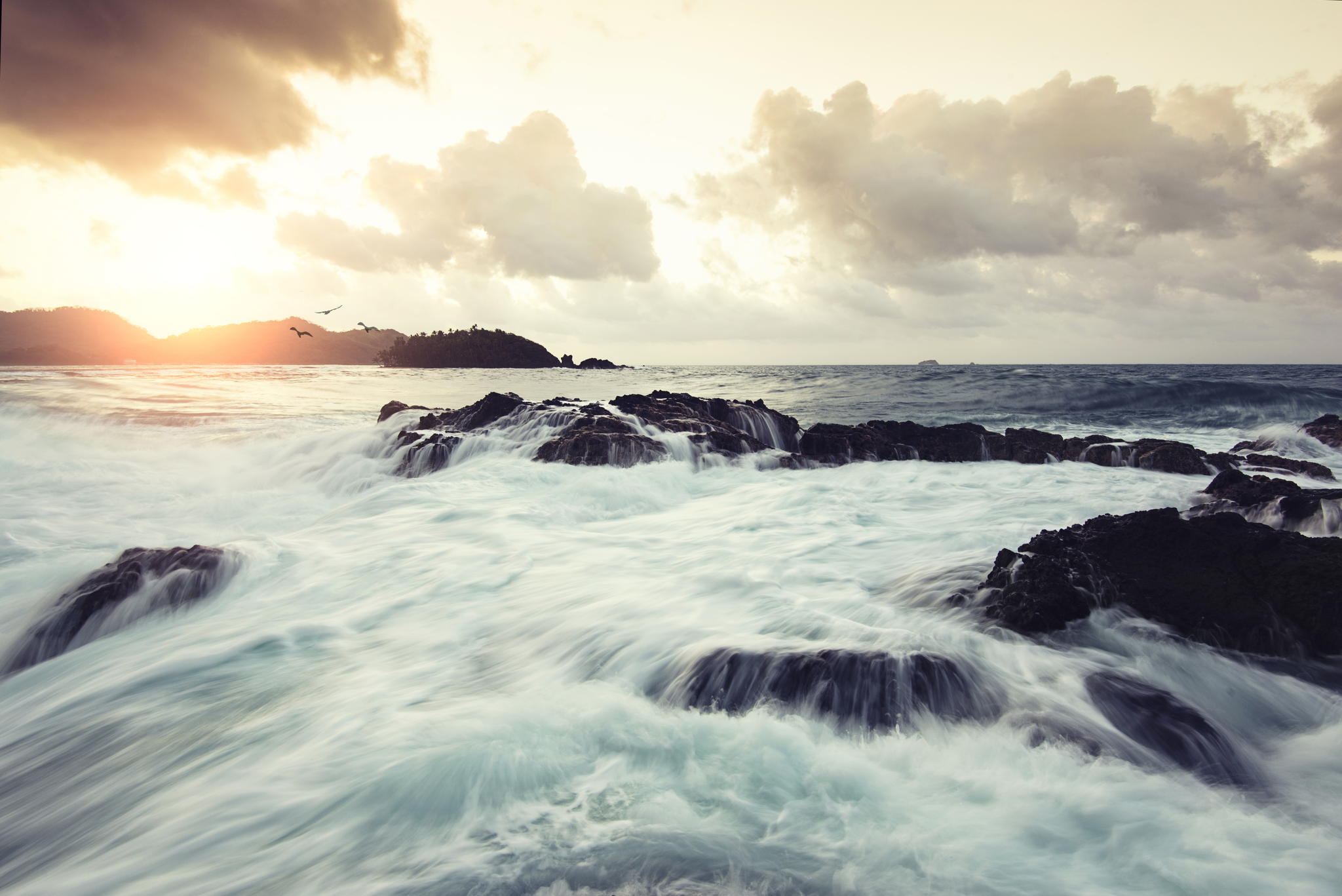 Как скачать картинку закат суша остров океан камни