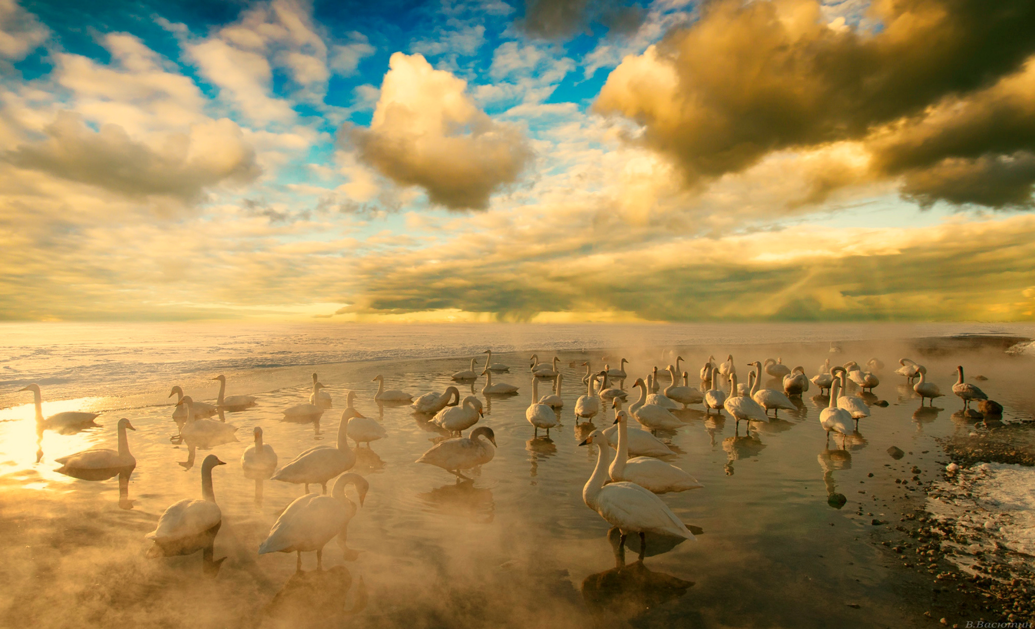 Как скачать картинку озеро птицы туман