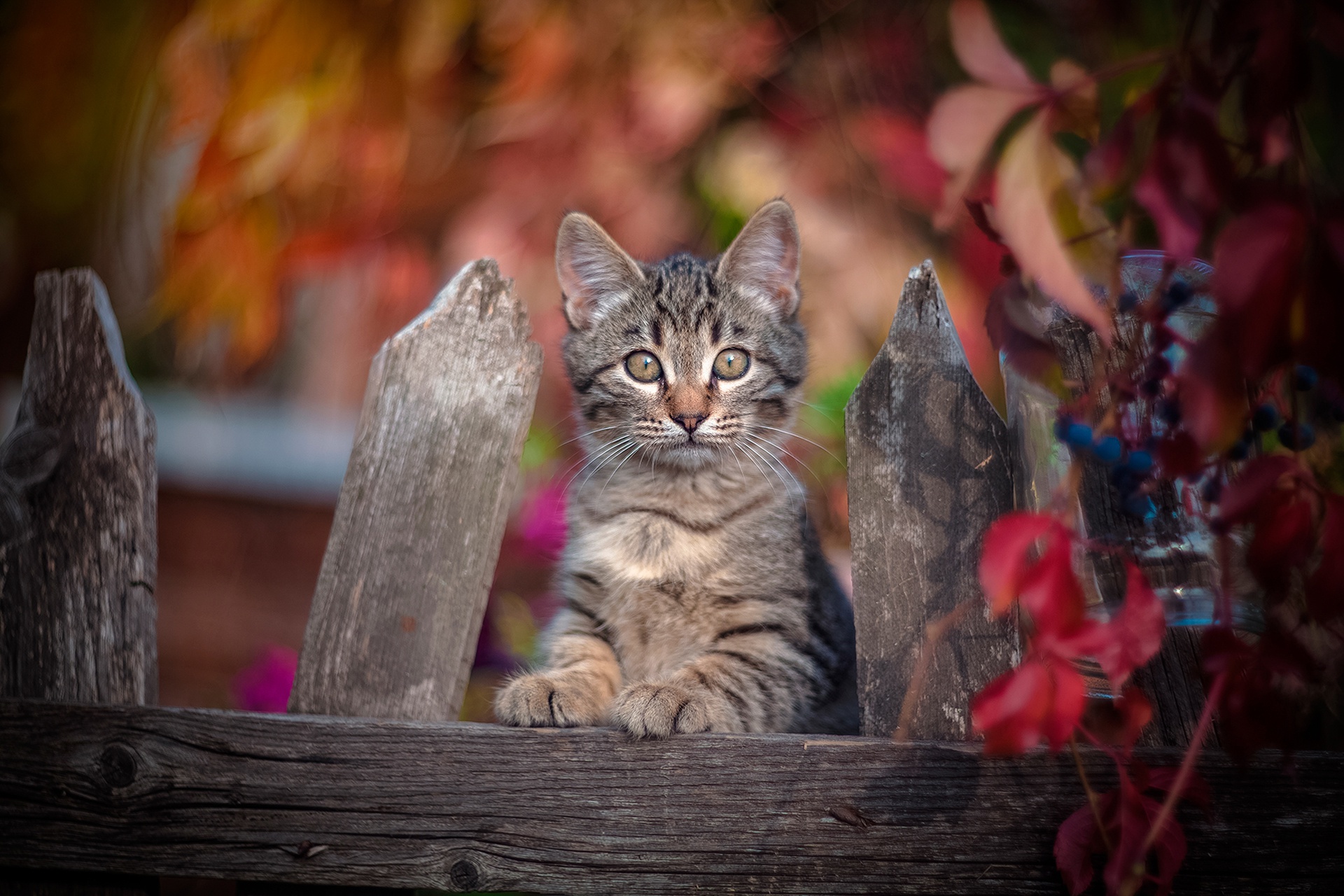 Ищете где бесплатно скачать картинку взгляд забор котёнок боке на смартфон или планшет?