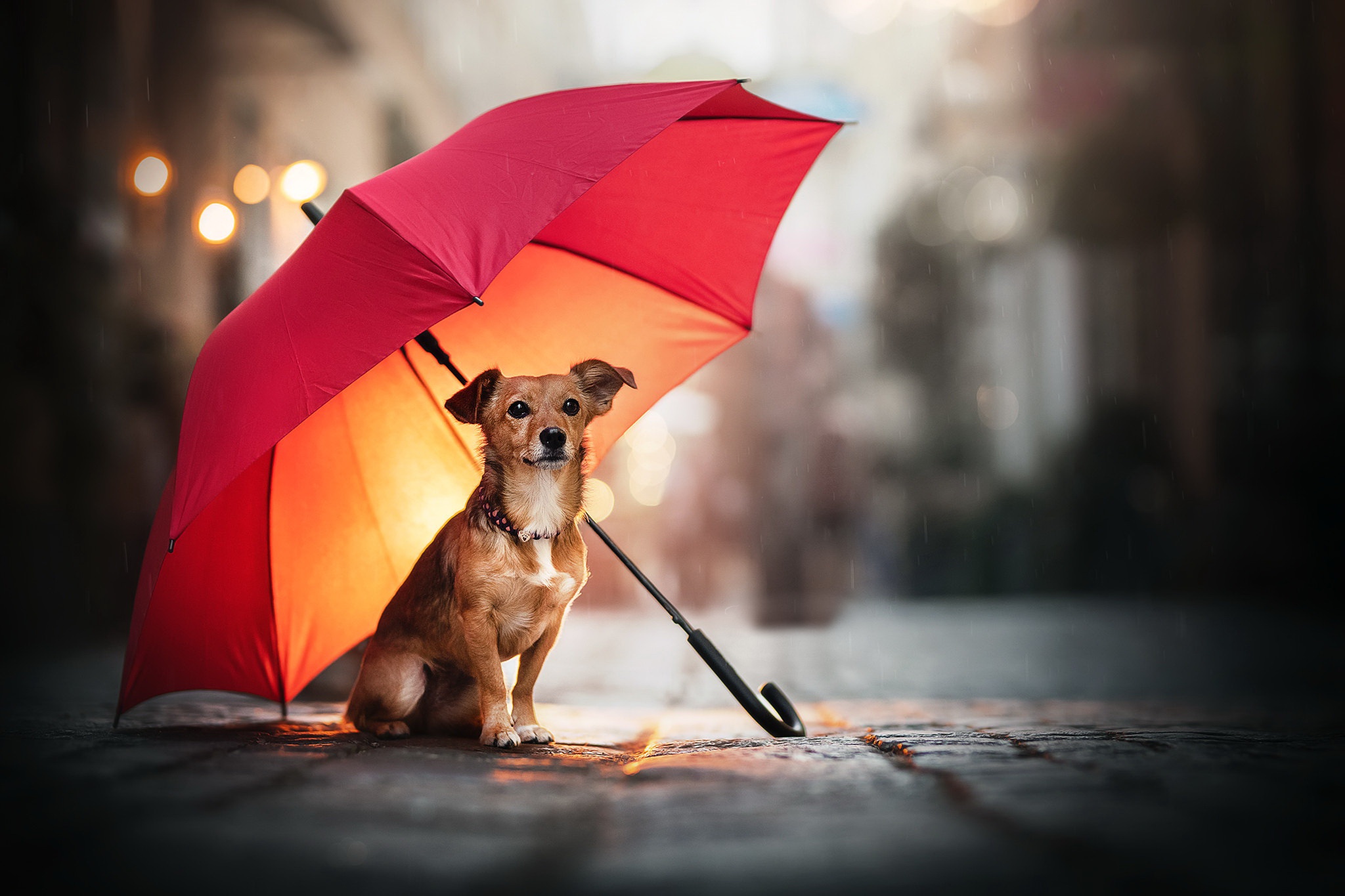 Ищете где бесплатно скачать картинку улица собака зонт на смартфон или планшет?
