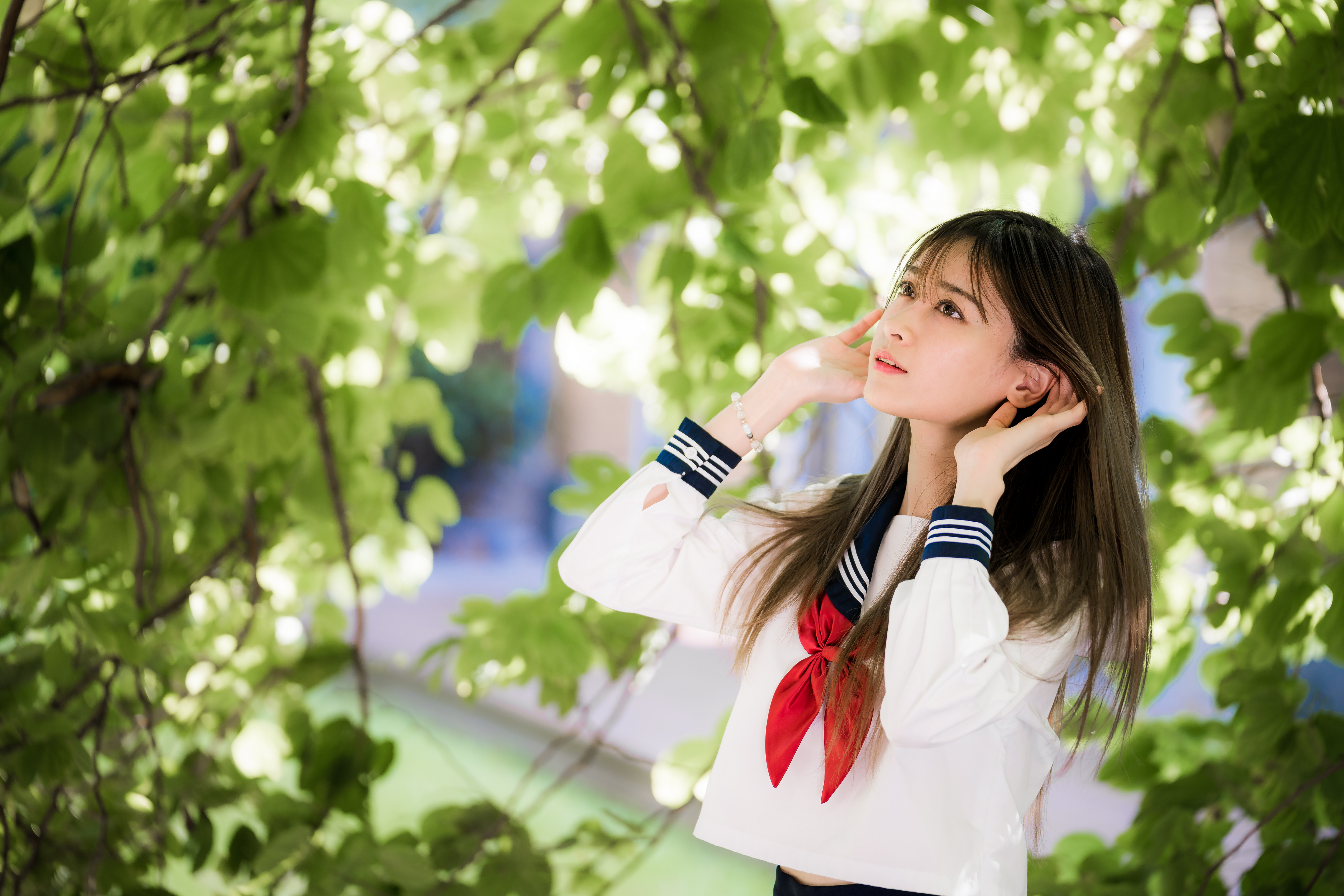 Ищете где бесплатно скачать картинку Школьница боке ветвь молодая на смартфон или планшет?
