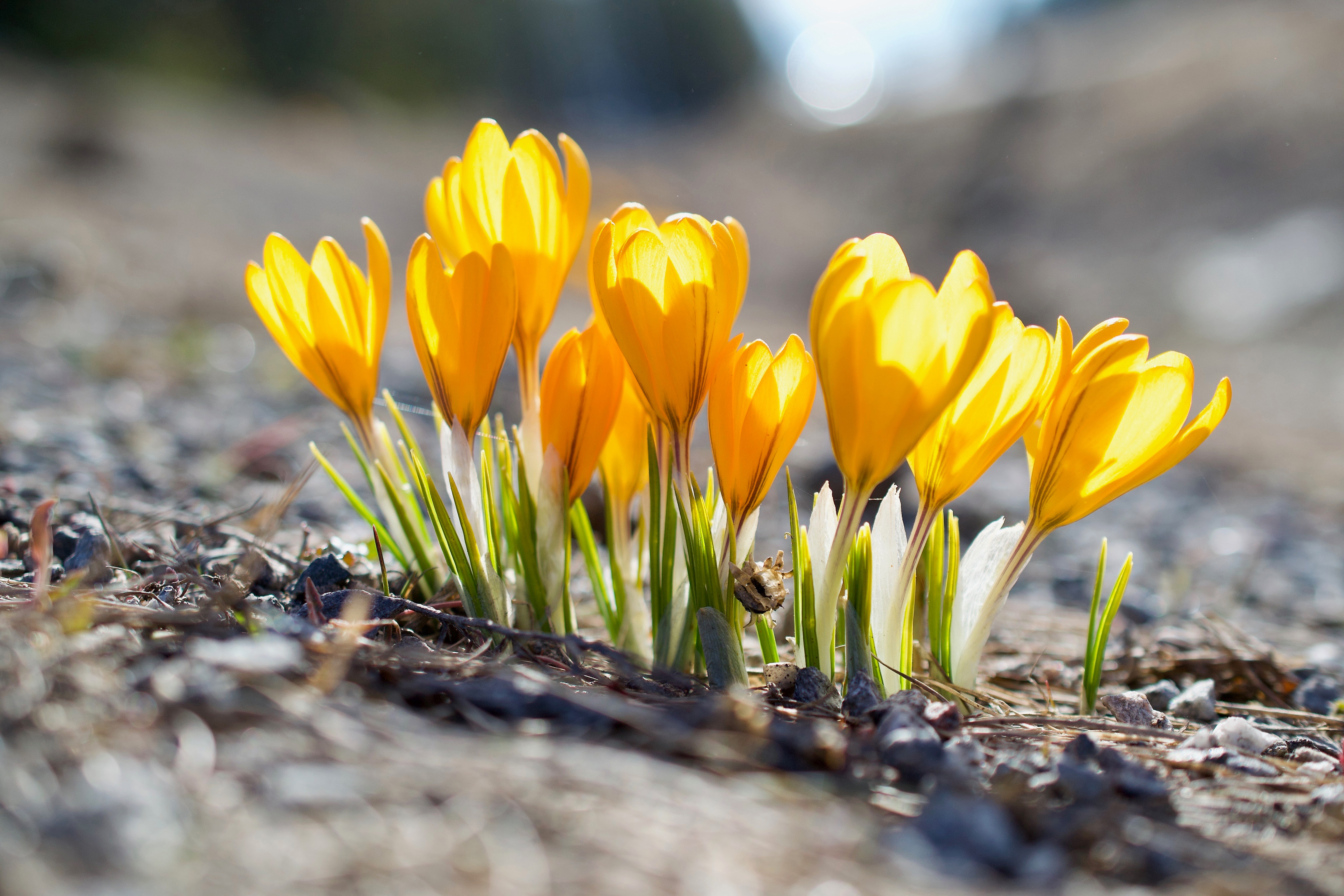 Ищете где бесплатно скачать картинку Красивые желтые весенние крокусы на смартфон или планшет?