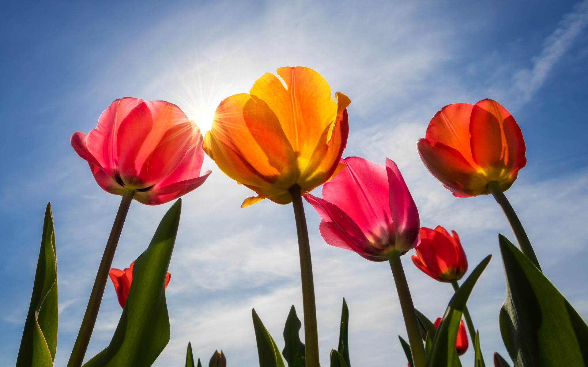 Ищете где бесплатно скачать картинку тюльпаны небо солнце на смартфон или планшет?