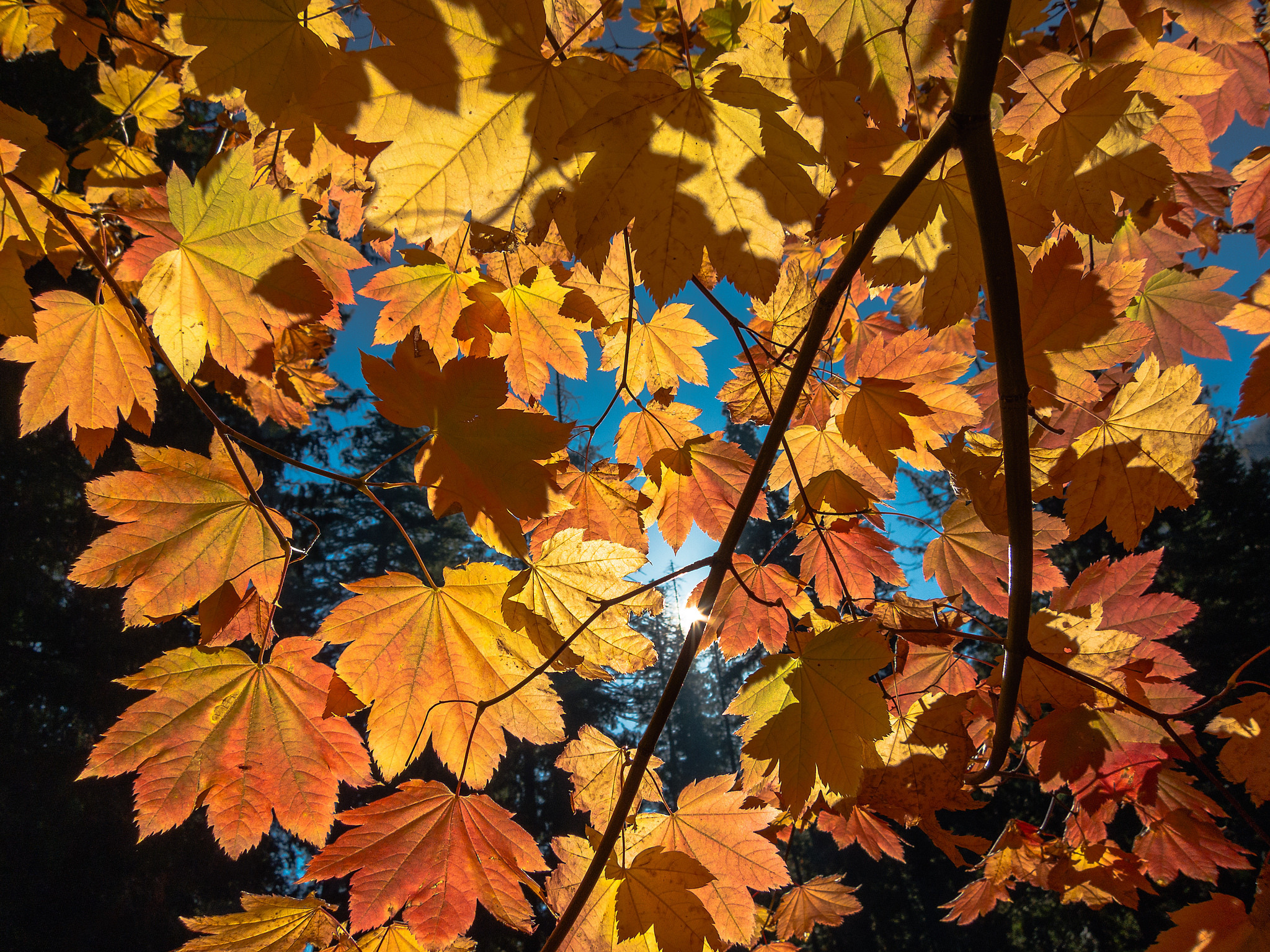 Ищете где бесплатно скачать картинку небо деревья листья ветка осень на смартфон или планшет?