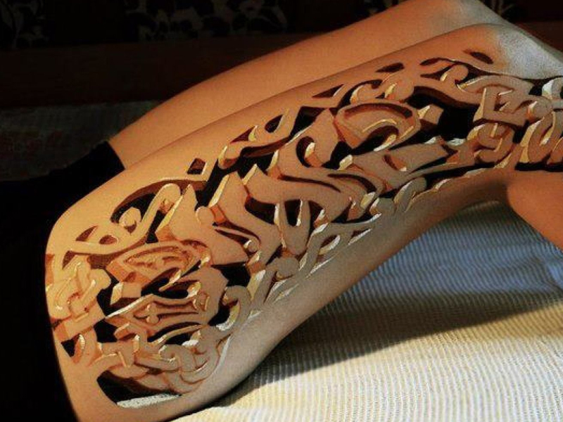 Невероятный пример мастерства татуировщика! Напоминает резьбу по дереву, но это просто тату