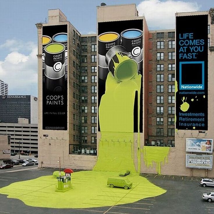 А потом ты вдруг останавливаешься, достаёшь телефон и снимаешь… потому что билборд притворился разбитым окном, стена начала течь шоколадом, а скамейка превратилась в огромный кусок пиццы.