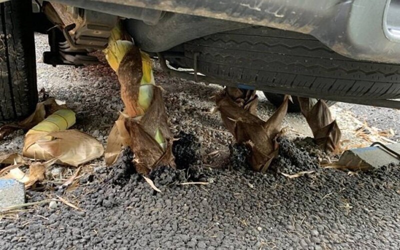 На парковке долго стояло авто. Сквозь асфальт под ним пророс бамбук, обездвижив транспорт