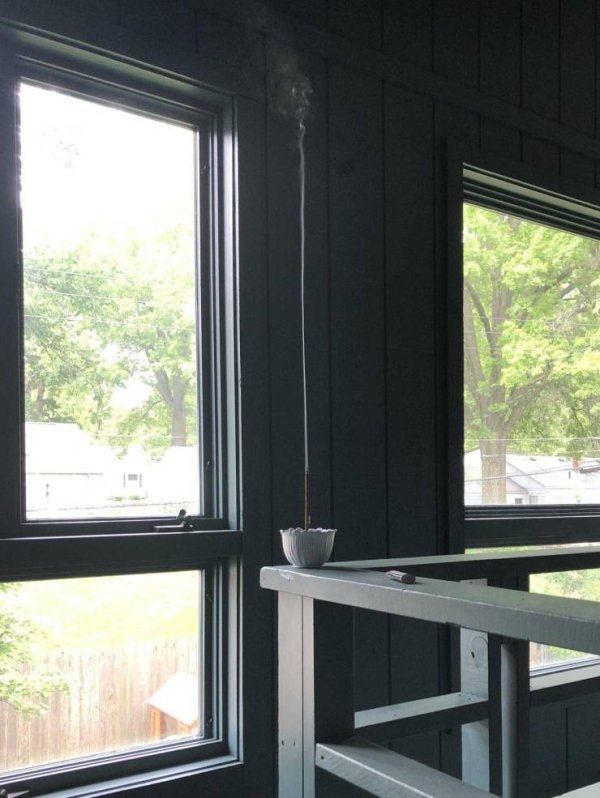 Дым, идеально ровно поднимающийся вверх от чашки с горячим чаем